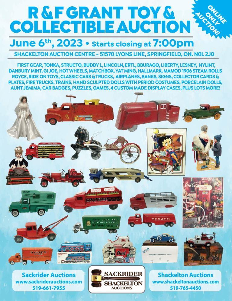 First Gear, Tonka, Structo, Buddy L, Lincoln, Ertl, Bburago, Liberty, Lesney, Nylint, Danbury Mint, GI Joe, Hot Wheels, Matchbox, Yat Ming, Hallmark, Mamod 1906 Steam Rolls Royce, Ride On Toys, Classic Cars & Trucks, Airplanes, Banks, Signs, Collector Cards & Plates, Fire Trucks, Trains, Hand Sculpted Dolls With Period Costumes, Porcelain Dolls, Aunt Jemima, Car Badges, Puzzles, Games, 4 Custom Made Display Cases, Plus Lots More!